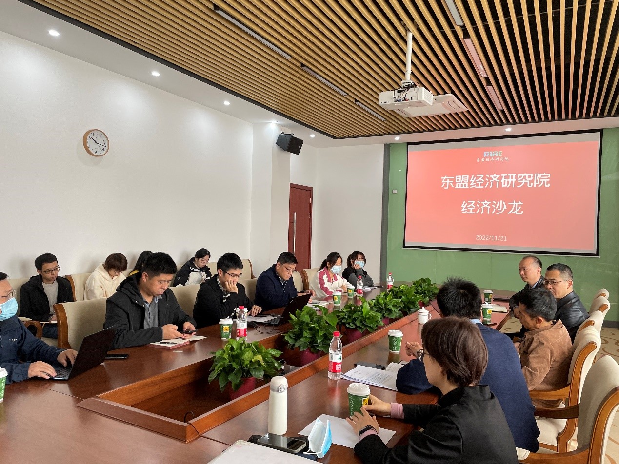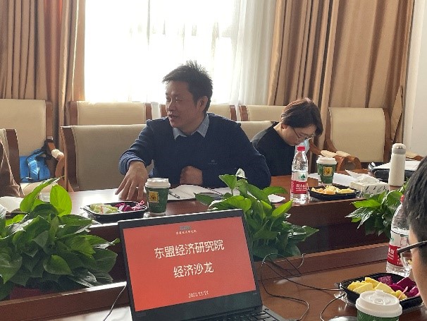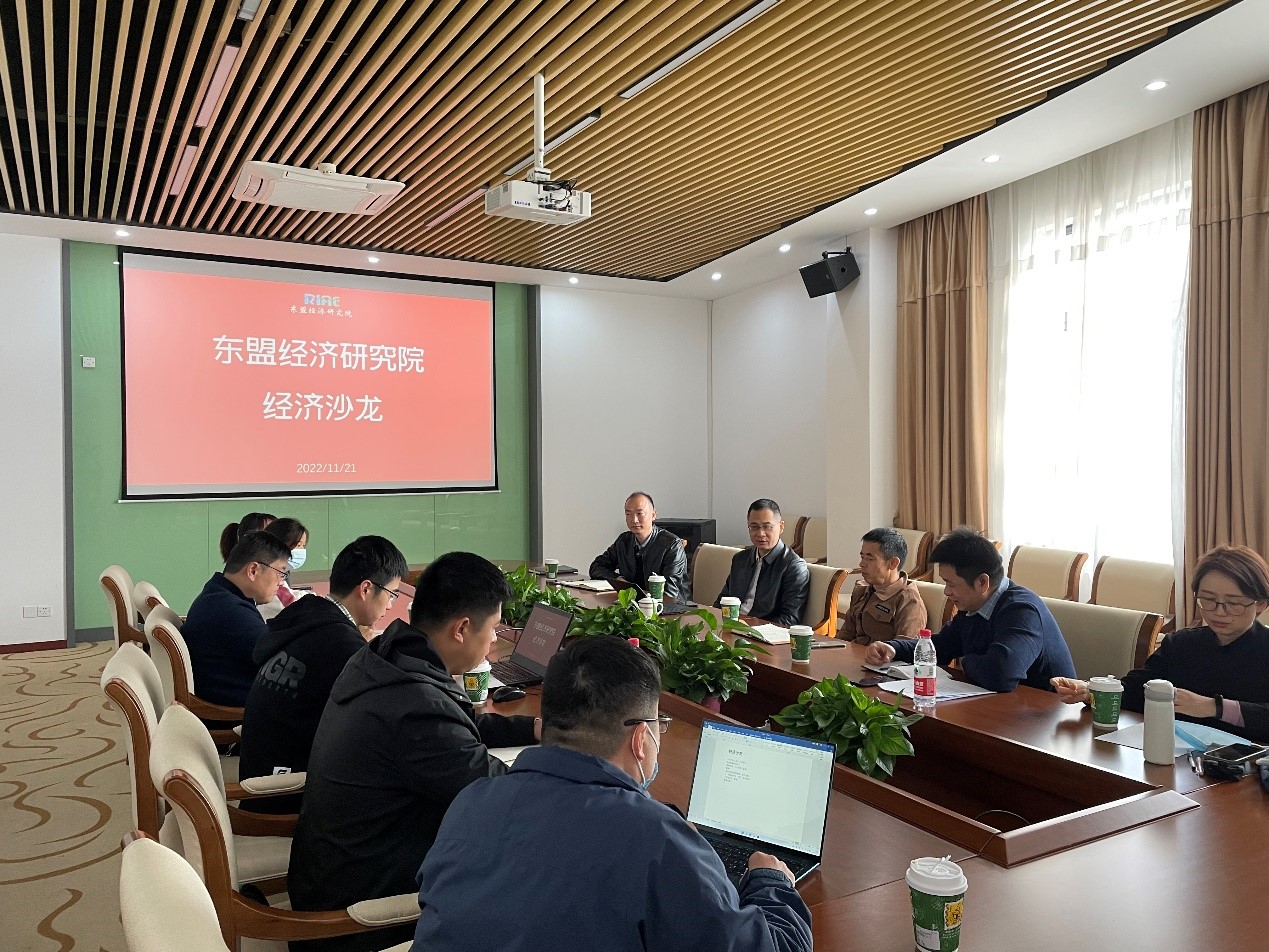 11月21日,东盟经济研究院举办经济沙龙,由院长李文龙主讲,副院长王会龙、赵沭明、张世明及相关教师和全体研究员二十余人参与讨论。