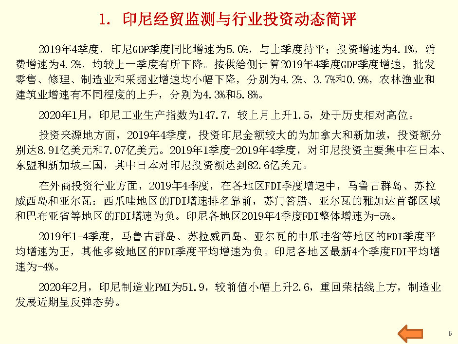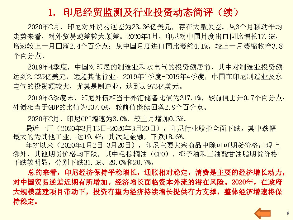 印尼经贸监测与行业投资报告(2020年3月第4周)