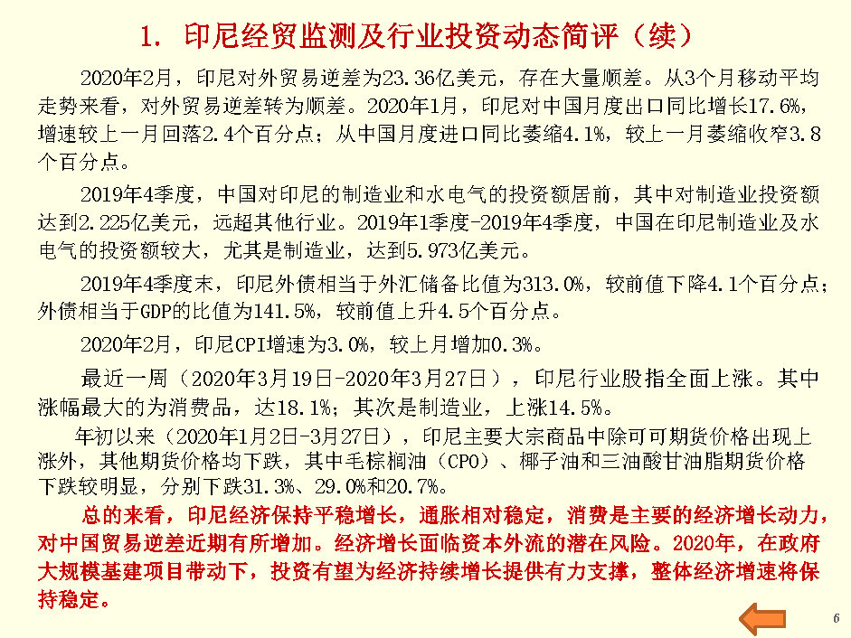 印尼经贸监测与行业投资报告(2020年3月第4周)