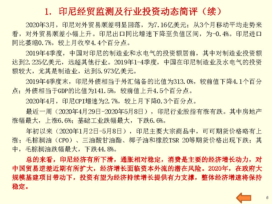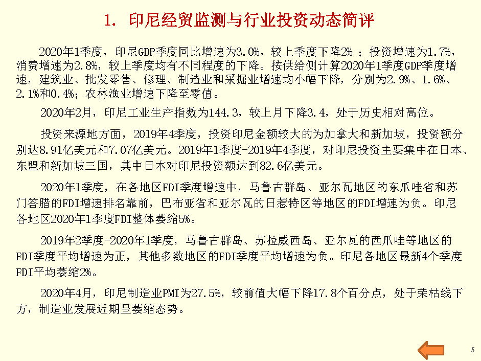 印尼经贸监测与行业投资报告(2020年4月第5周)