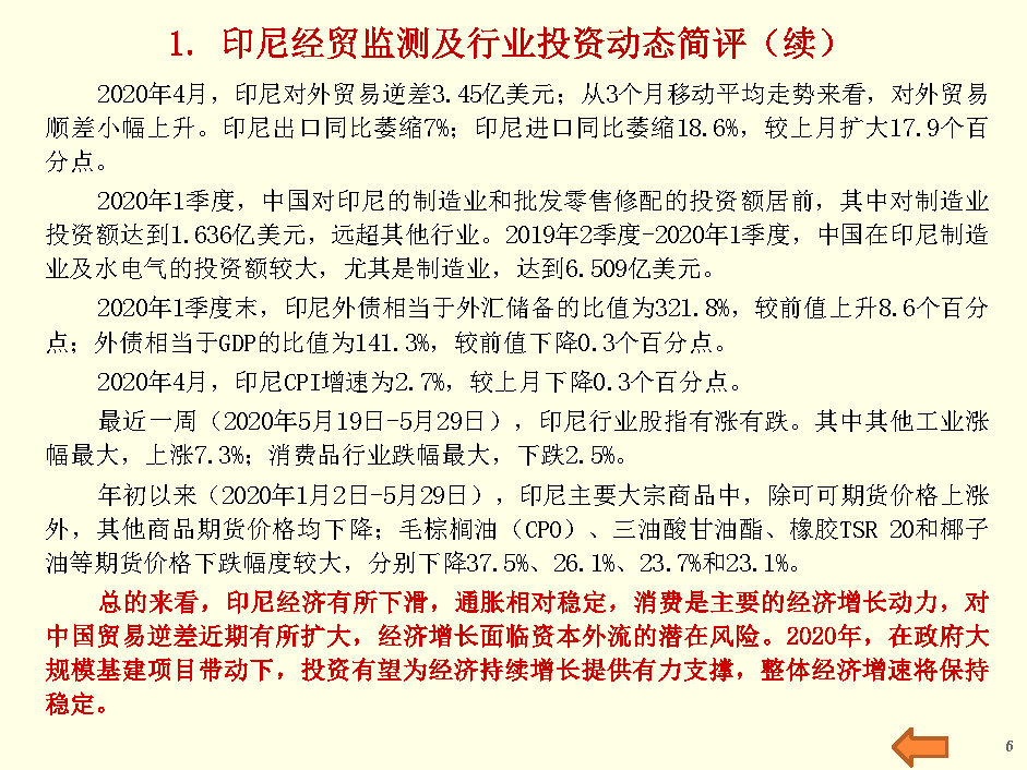 印尼经贸监测与行业投资报告(2020年6月第1周)