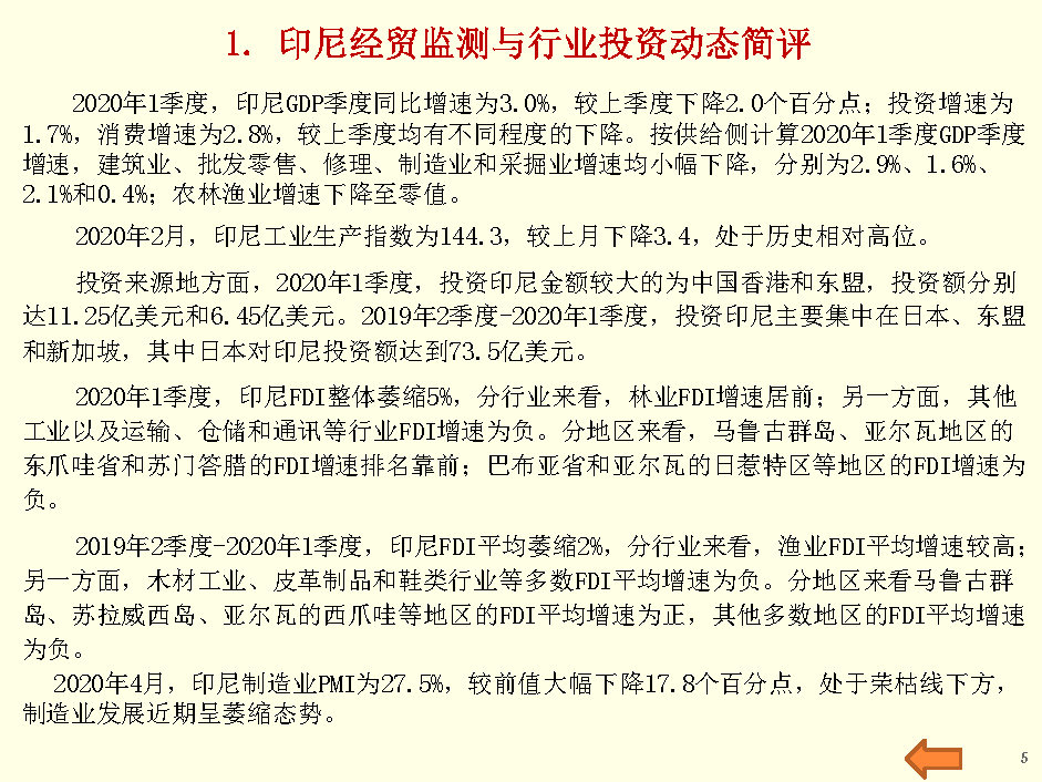 印尼经贸监测与行业投资报告(2020年5月第3周)