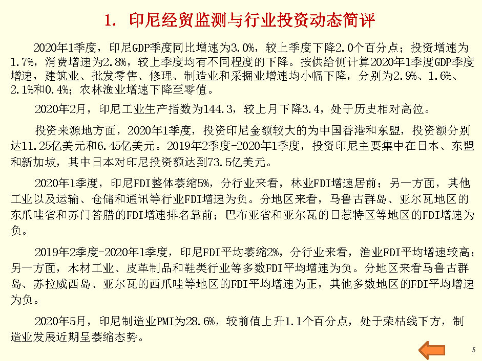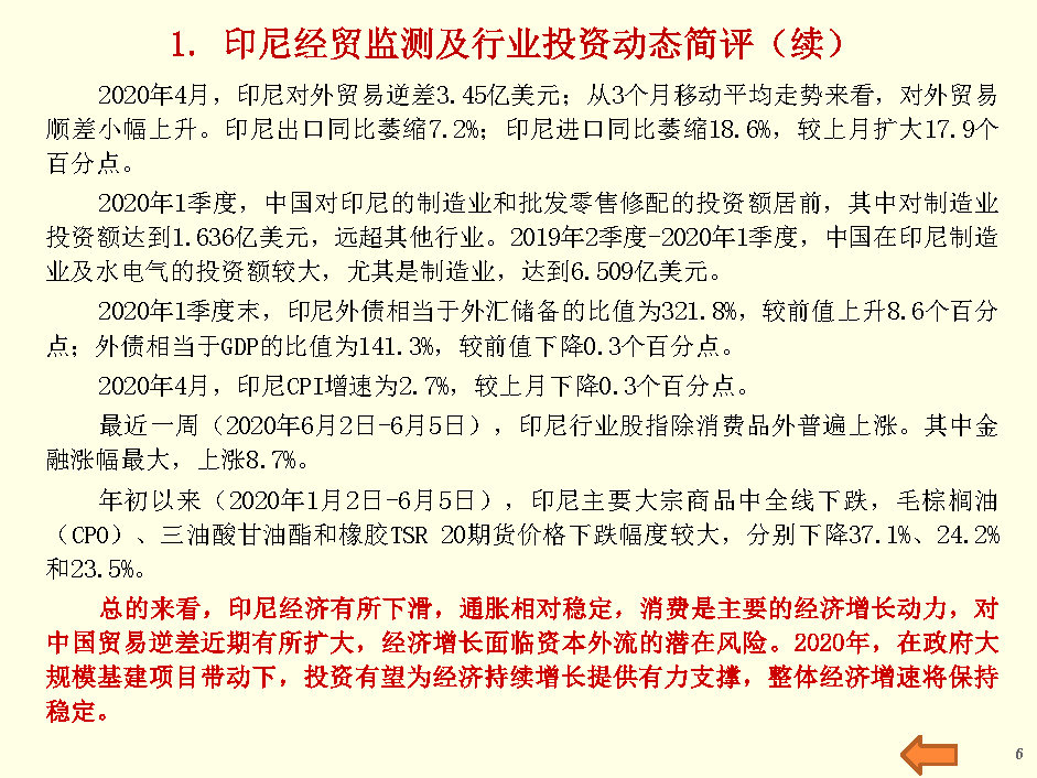 印尼经贸监测与行业投资报告(2020年6月第1周)