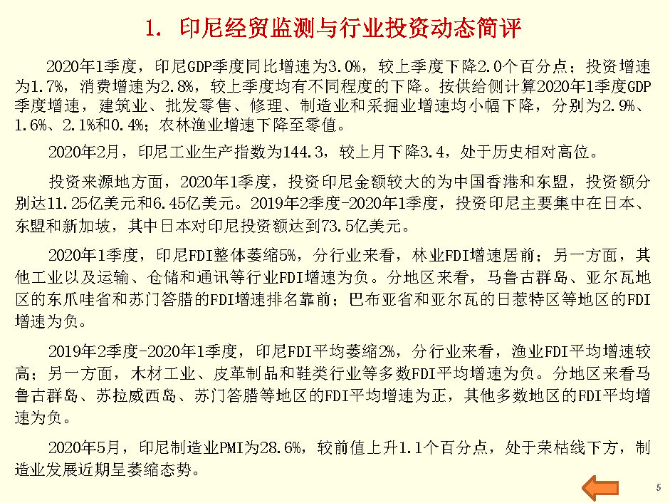印尼经贸监测与行业投资报告(2020年6月第4周)