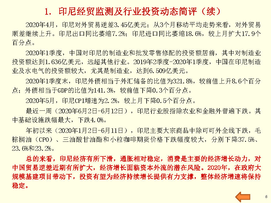 印尼经贸监测与行业投资报告(2020年6月第2周)