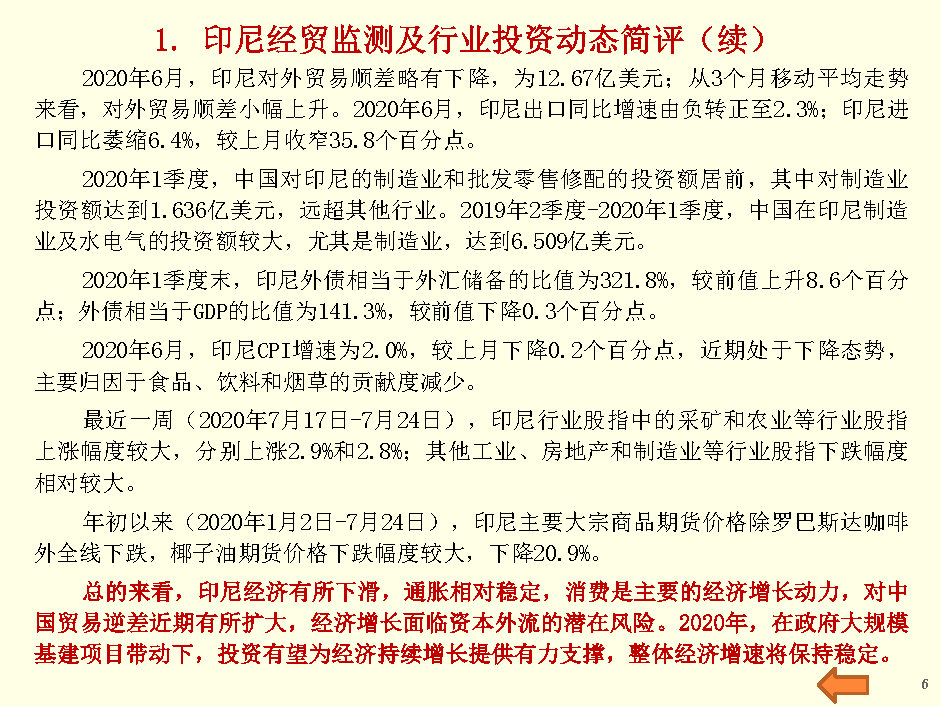 印尼经贸监测与行业投资报告(2020年7月第4周)