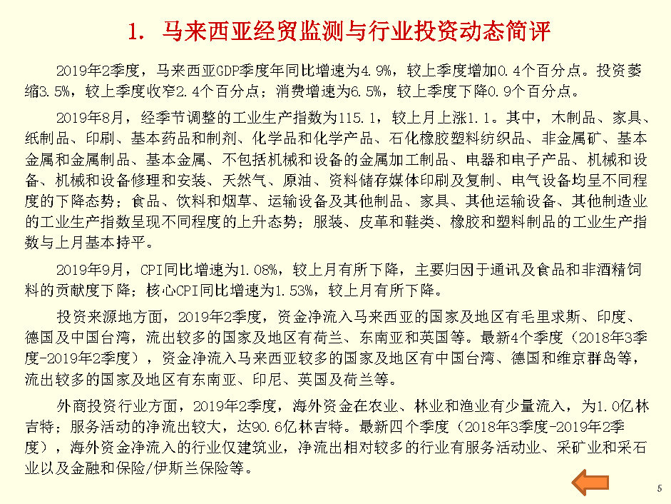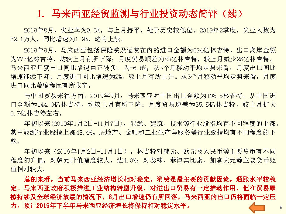马来西亚经贸监测与行业投资报告2019年10月第3周
