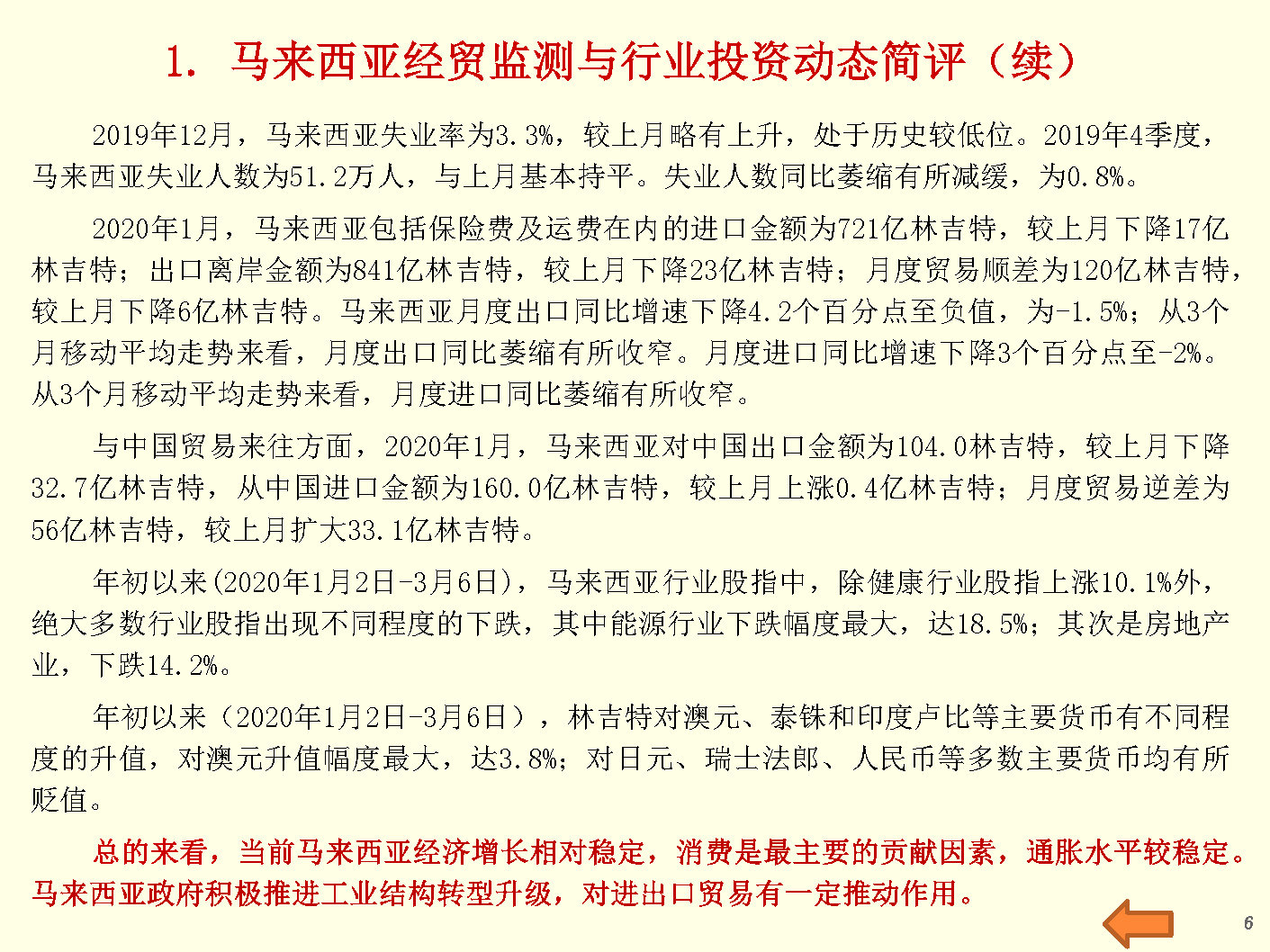 马来西亚经贸监测与行业投资报告(2020年3月第2周)