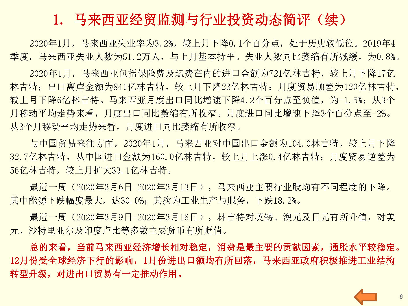 马来西亚经贸监测与行业投资报告(2020年3月第2周)