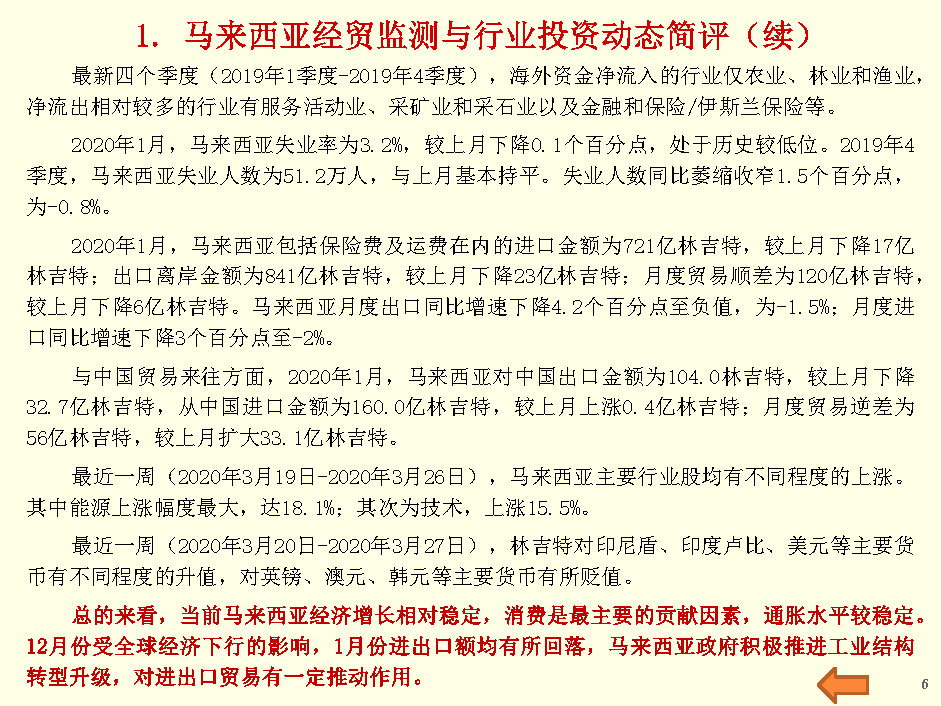 马来西亚经贸监测与行业投资报告(2020年4月第1周)