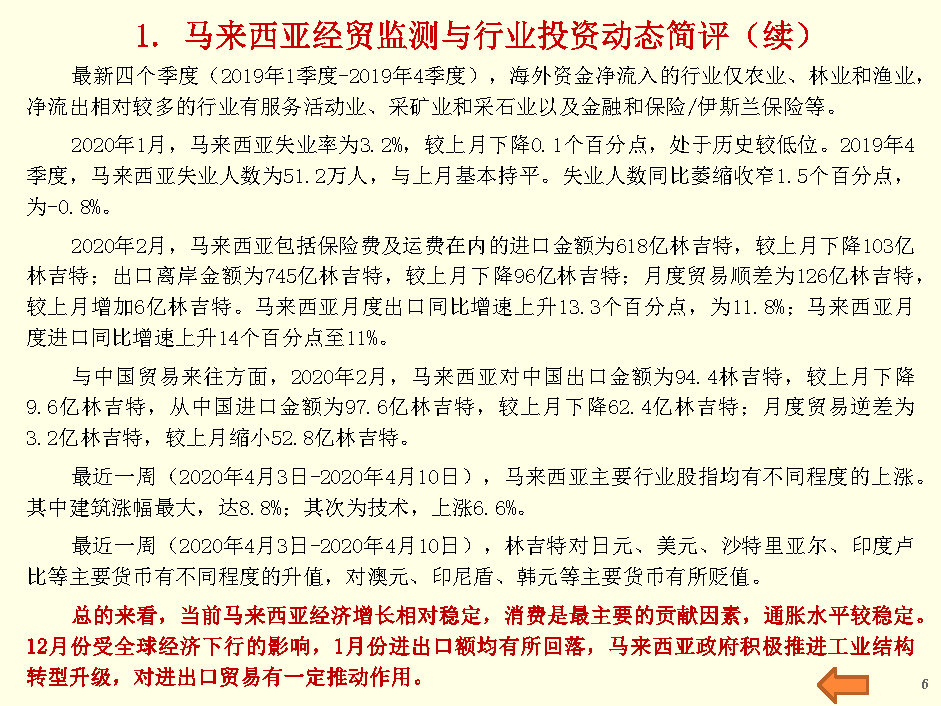 马来西亚经贸监测与行业投资报告(2020年4月第2周)