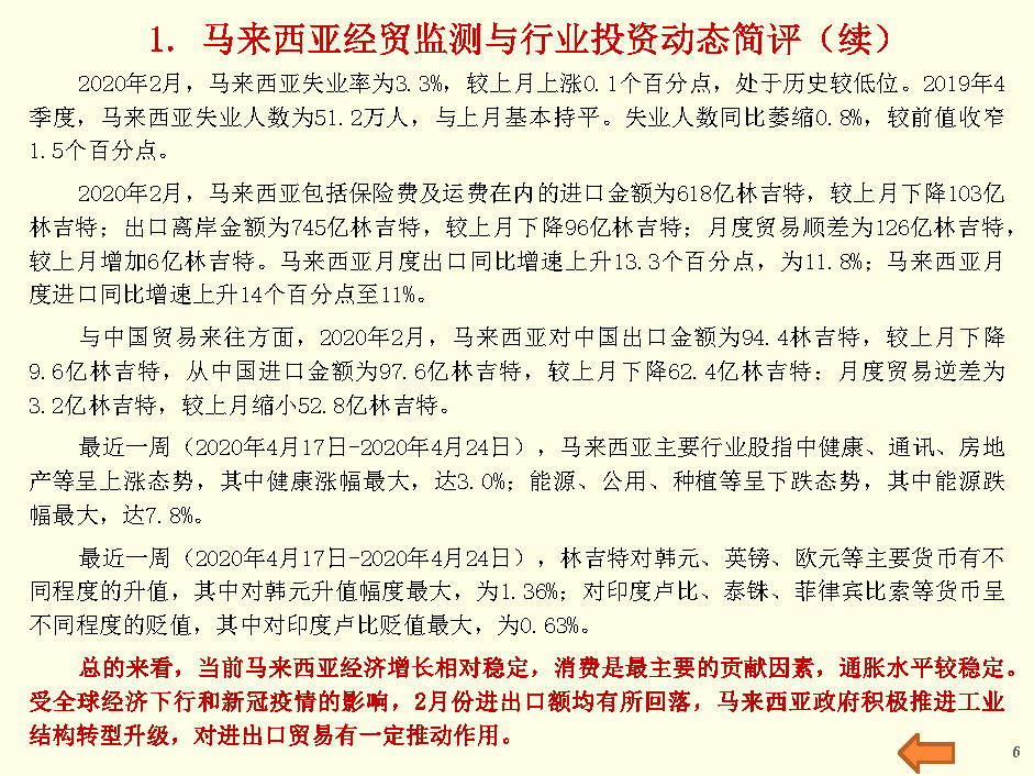 马来西亚经贸监测与行业投资报告(2020年4月第4周)