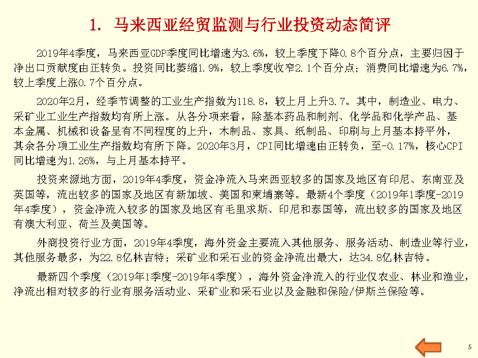 马来西亚经贸监测与行业投资报告(2020年4月第5周)