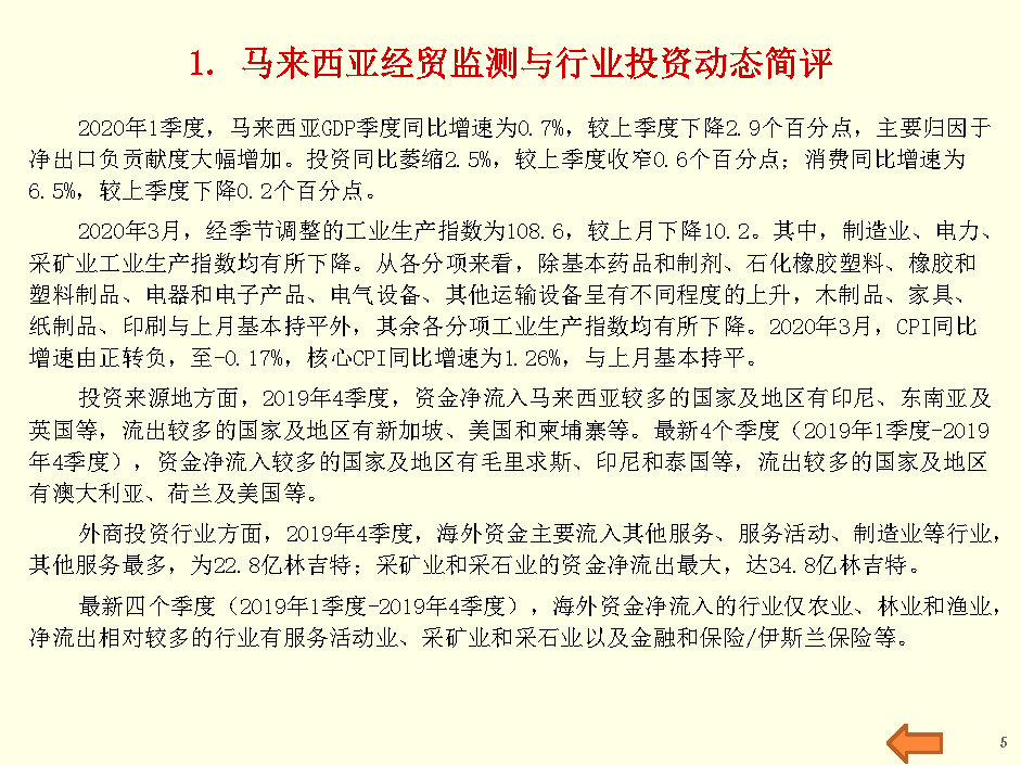 马来西亚经贸监测与行业投资报告(2020年5月第2周)