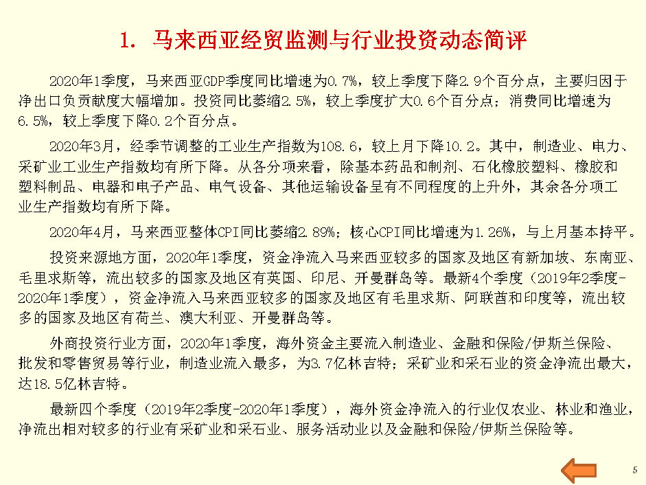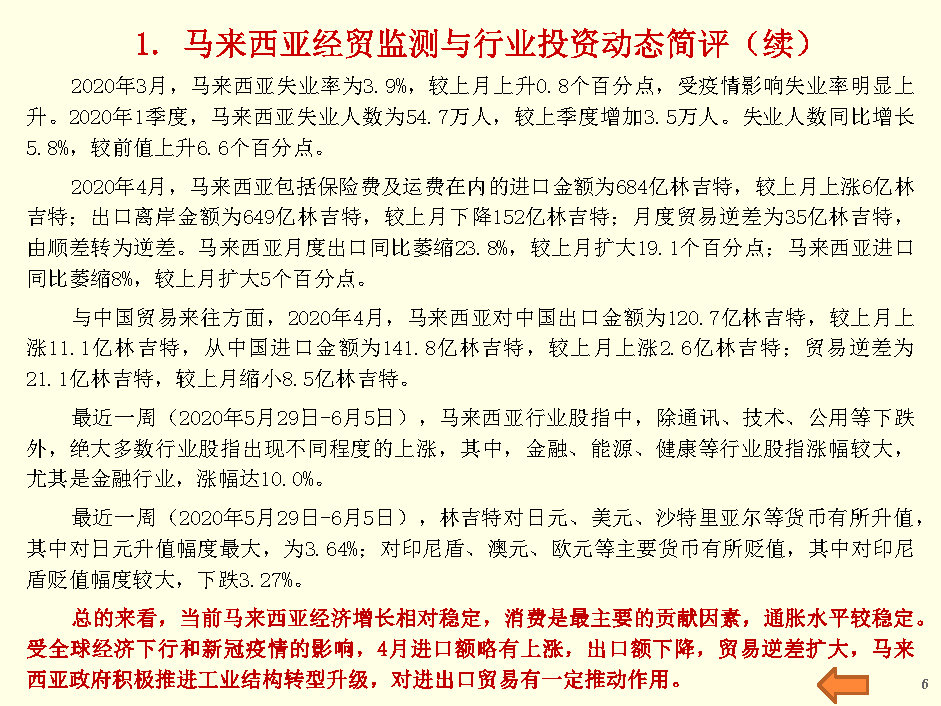马来西亚经贸监测与行业投资报告(2020年6月第1周)