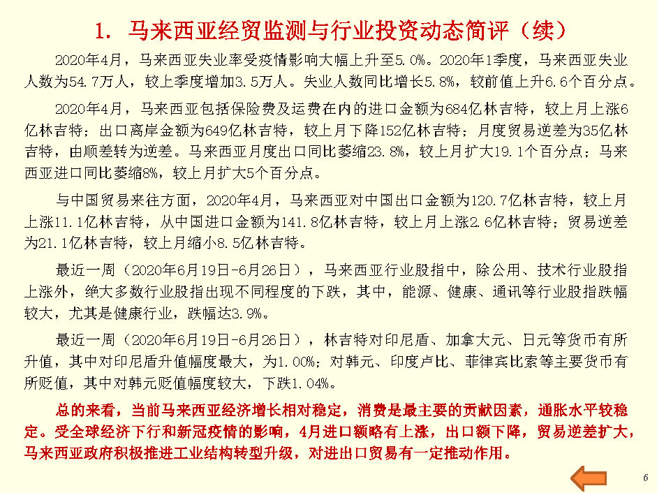 马来西亚经贸监测与行业投资报告(2020年6月第4周)