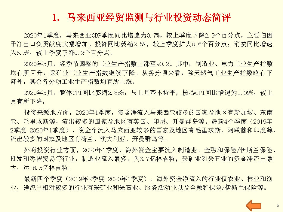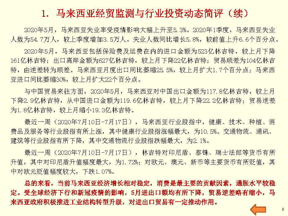 马来西亚经贸监测与行业投资报告(2020年7月第5周)