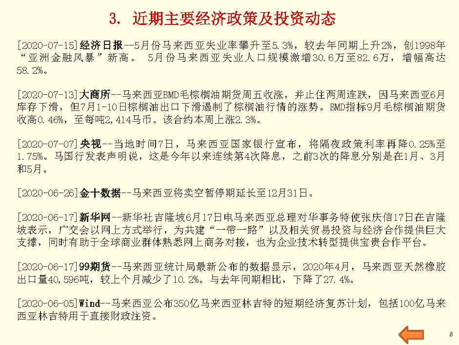 马来西亚经贸监测与行业投资报告(2020年7月第3周)