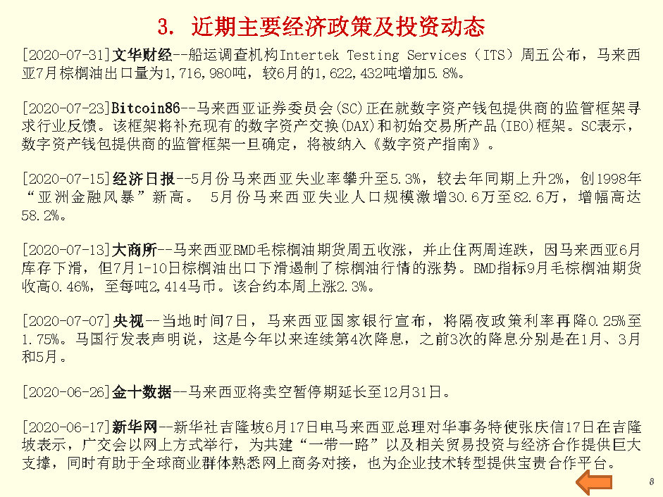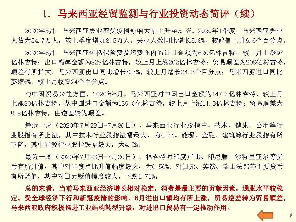 马来西亚经贸监测与行业投资报告(2020年7月第5周)
