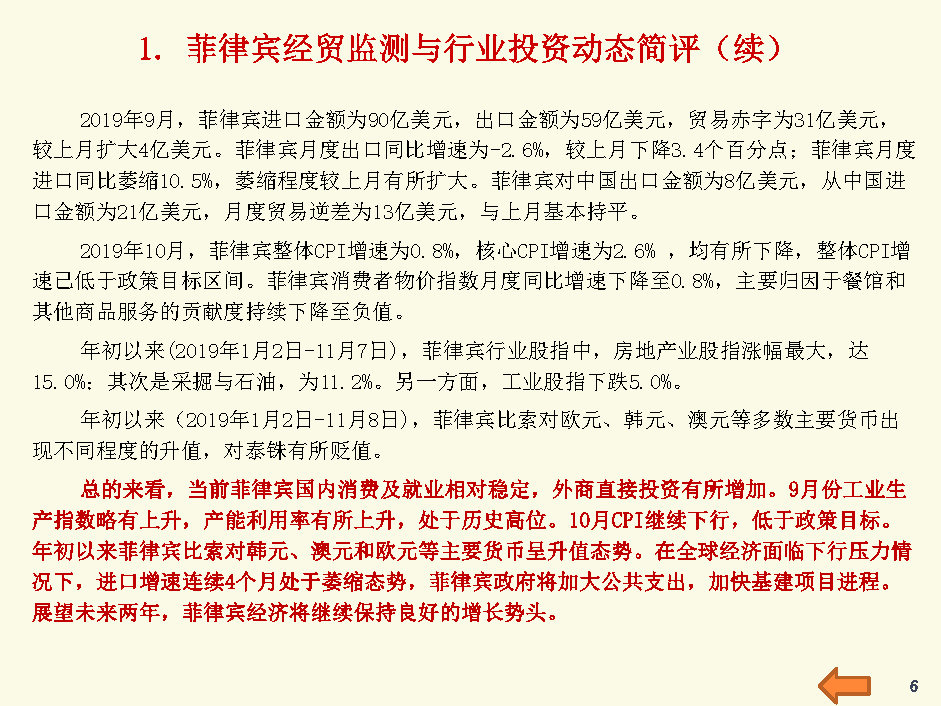 菲律宾经贸监测与行业投资报告(2019年11月第2周)