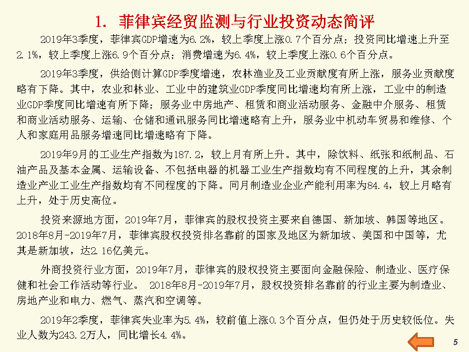 菲律宾经贸监测与行业投资报告2019年10月第3周