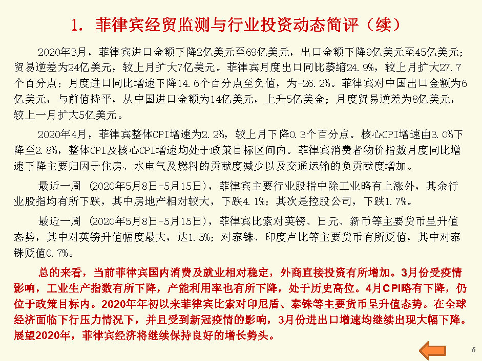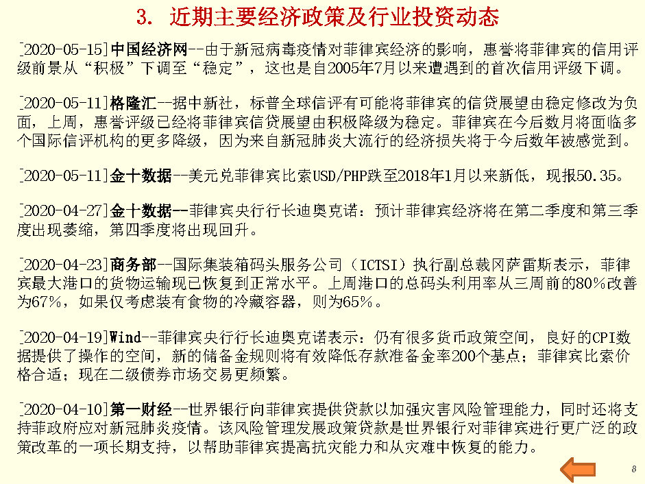 菲律宾经贸监测与行业投资报告(2020年5月第3周)