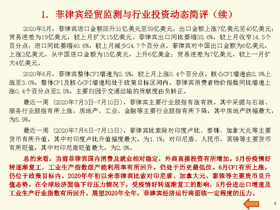 菲律宾经贸监测与行业投资报告(2020年7月第4周)