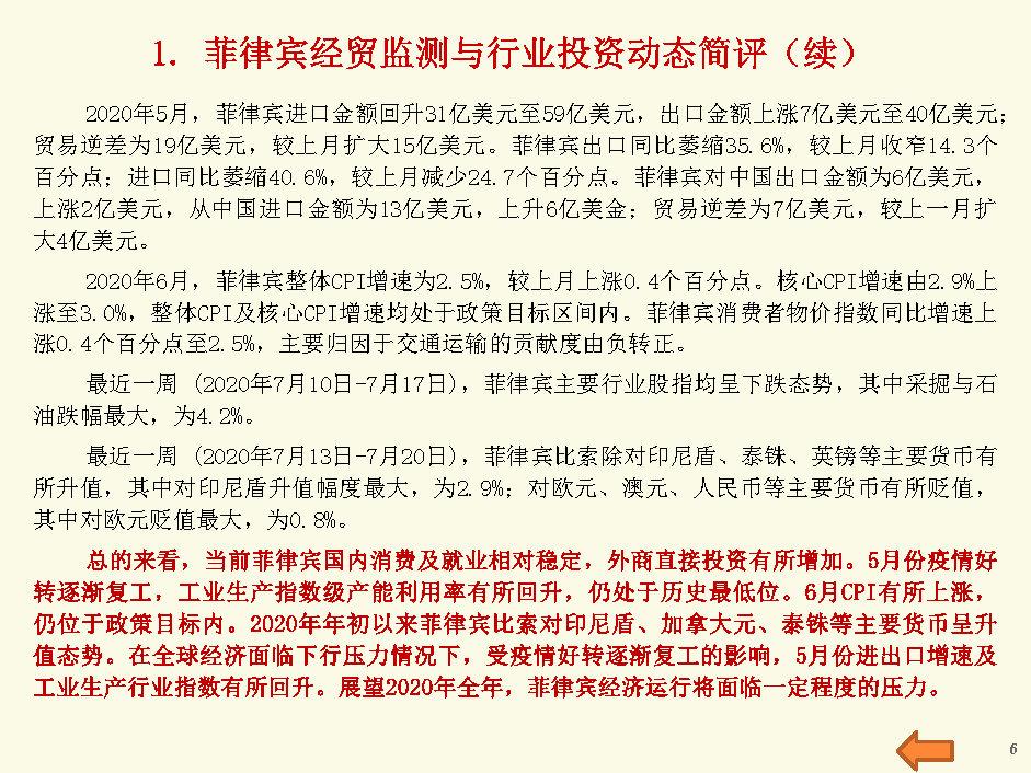 菲律宾经贸监测与行业投资报告(2020年7月第4周)