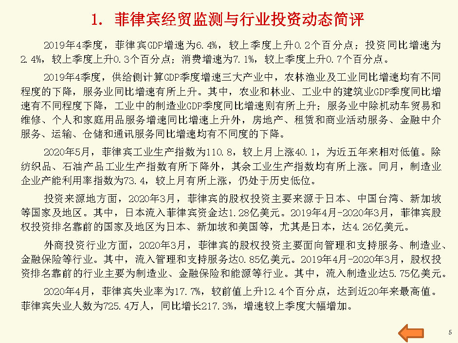 菲律宾经贸监测与行业投资报告(2020年7月第5周)