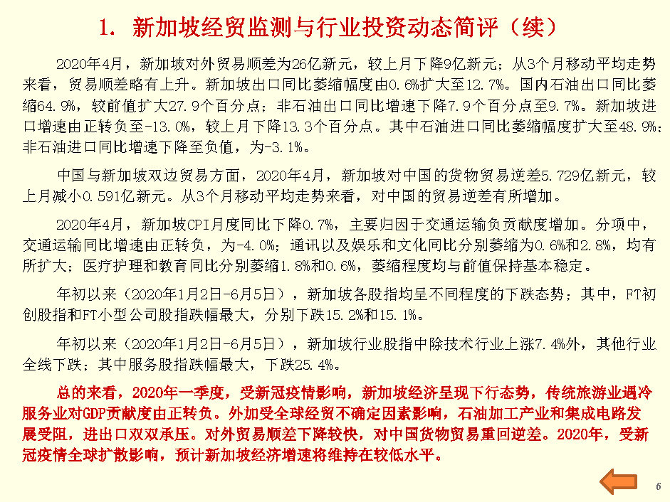 新加坡经贸监测与行业投资报告(2020年6月第1周)