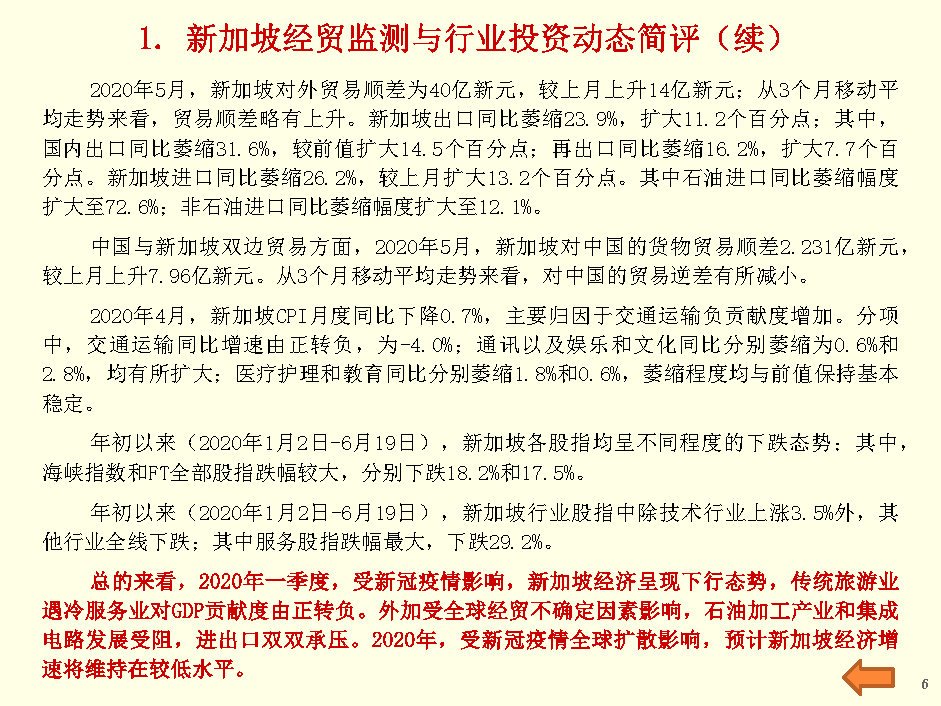 新加坡经贸监测与行业投资报告(2020年6月第4周)
