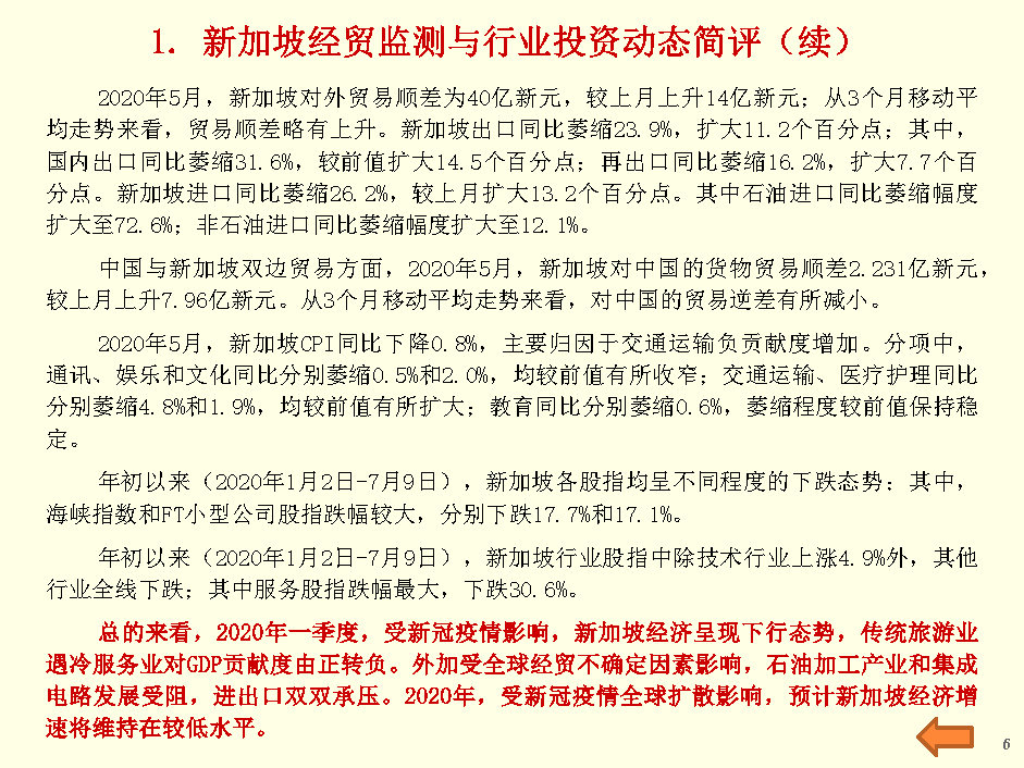 新加坡经贸监测与行业投资报告(2020年7月第3周)