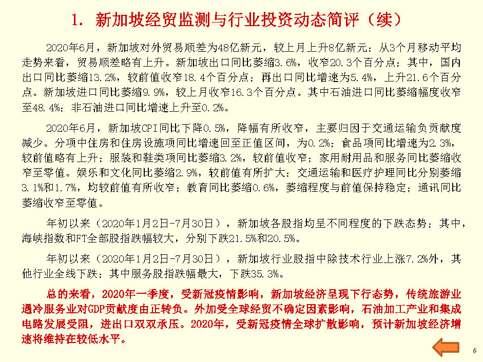 新加坡经贸监测与行业投资报告(2020年8月第1周)
