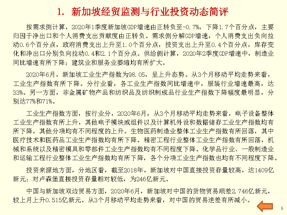 新加坡经贸监测与行业投资报告(2020年8月第1周)