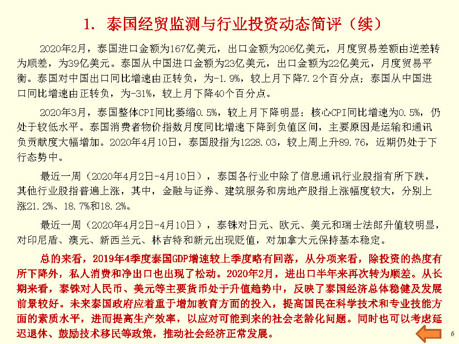 泰国经贸监测与行业投资报告(2020年4月第2周)