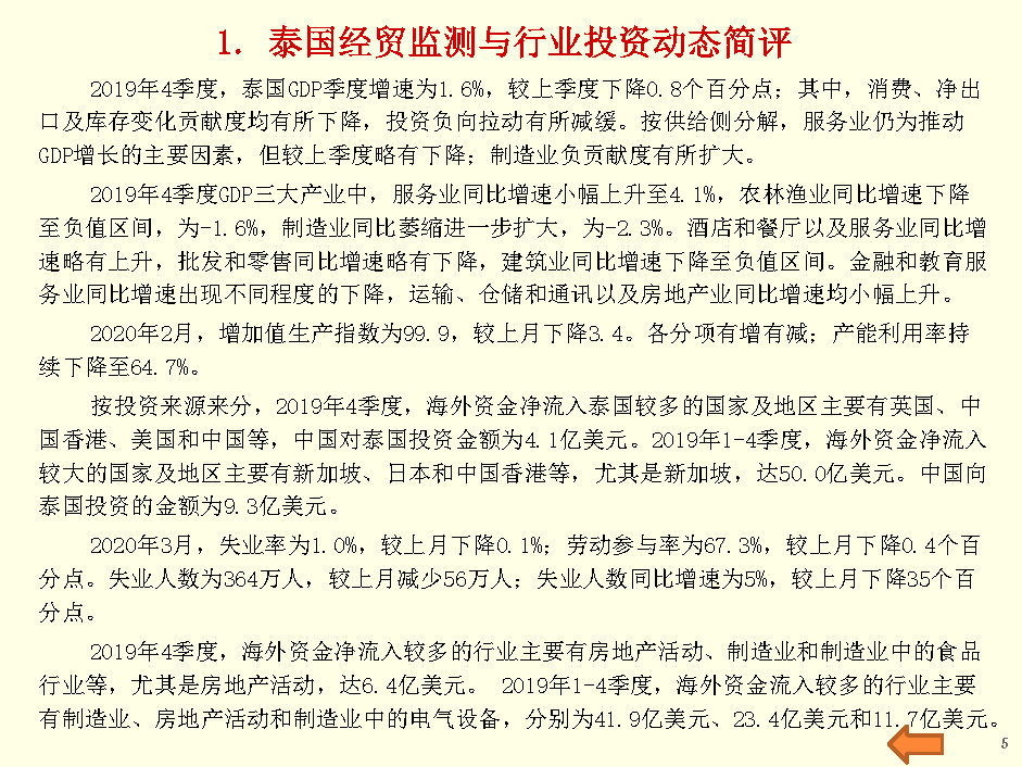 泰国经贸监测与行业投资报告(2020年4月第5周)