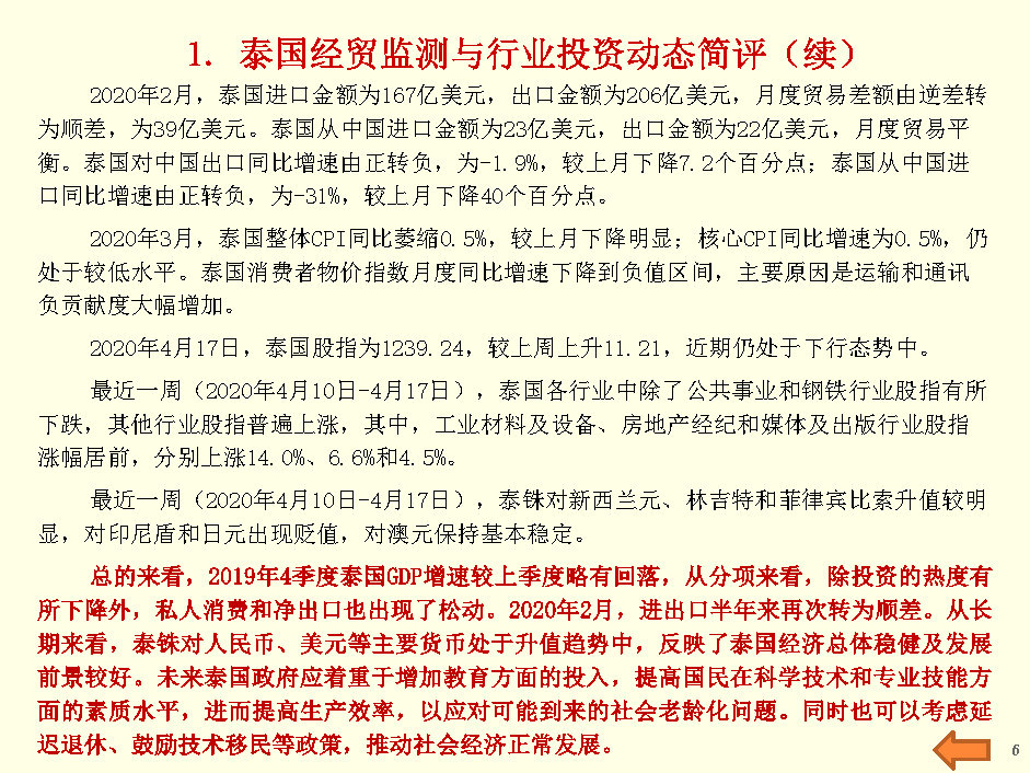 泰国经贸监测与行业投资报告(2020年4月第3周)