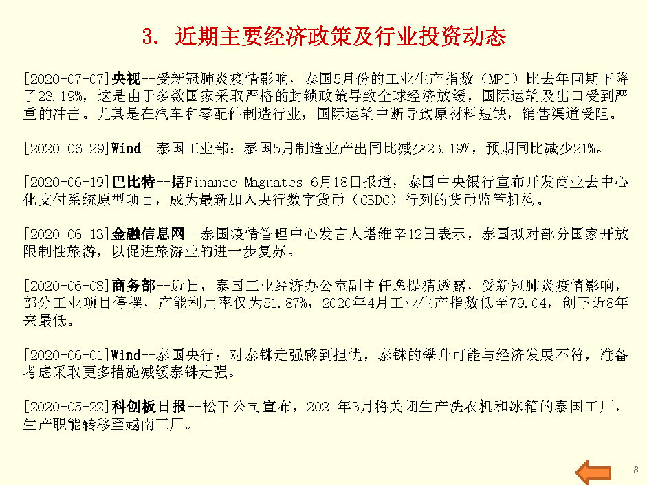 泰国经贸监测与行业投资报告(2020年7月第3周)