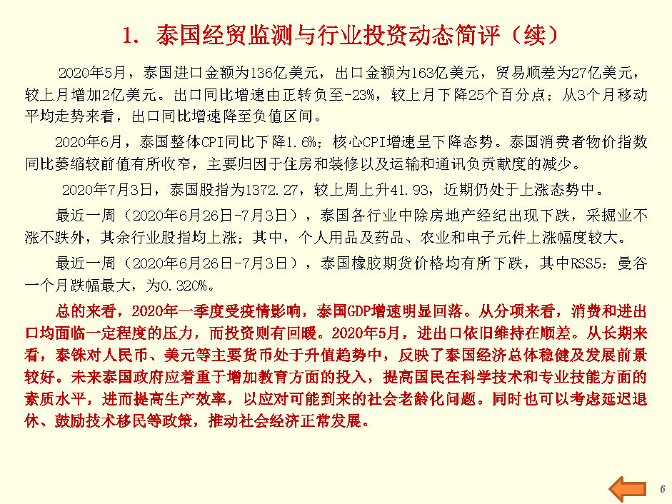 泰国经贸监测与行业投资报告(2020年7月第2周)