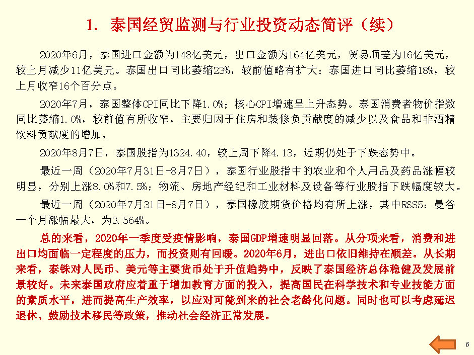 泰国经贸监测与行业投资报告(2020年8月第1周)
