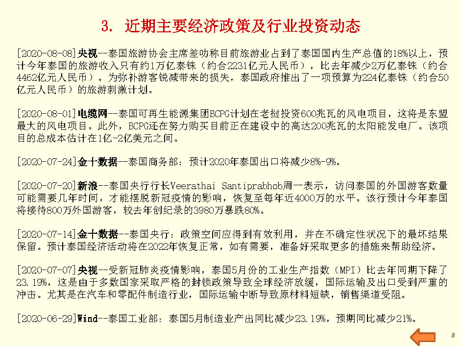 泰国经贸监测与行业投资报告(2020年8月第3周)