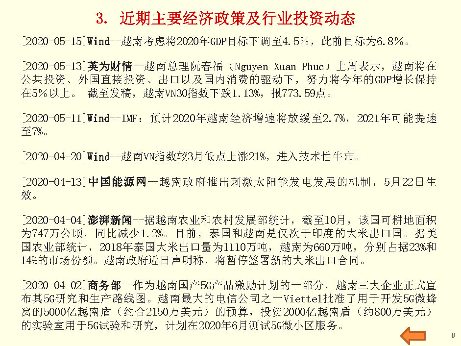 越南经贸监测与行业投资报告(2020年5月第3周)
