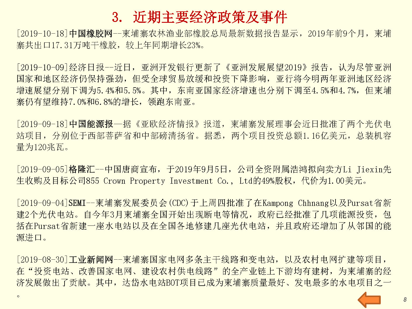 柬埔寨经贸监测与行业投资报告2019年10月第3周