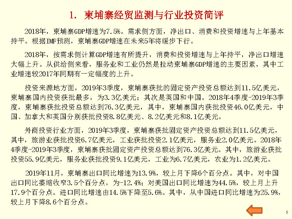 柬埔寨经贸监测与行业投资报告