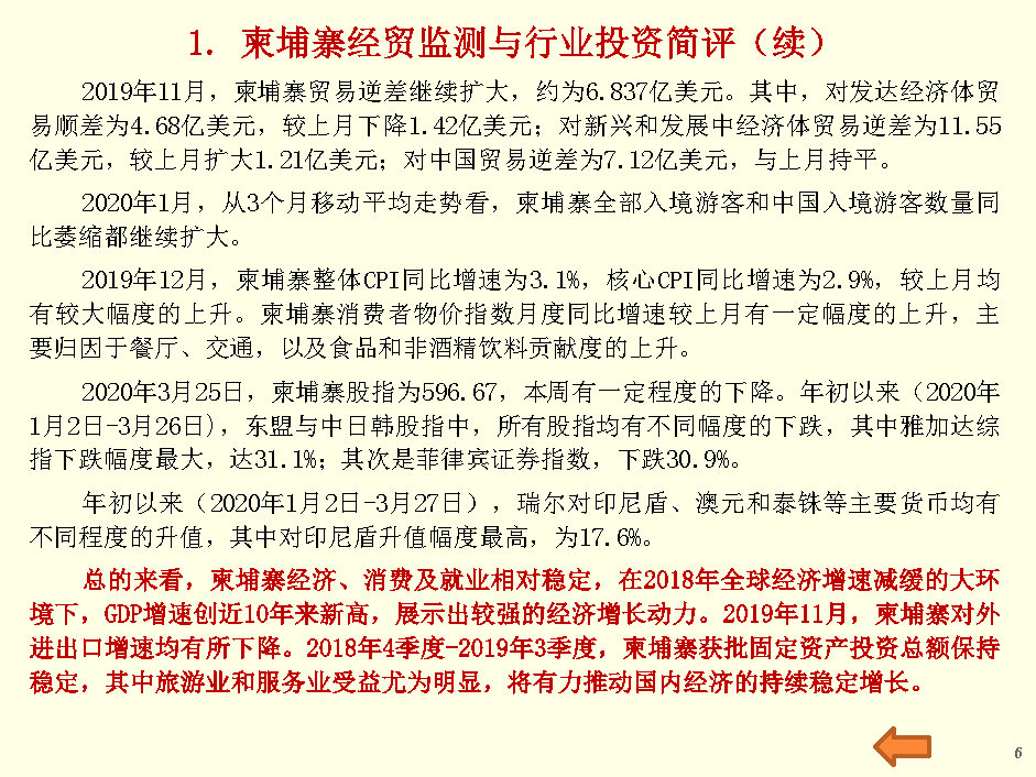 柬埔寨经贸监测与行业投资报告(2020年3月第4周)