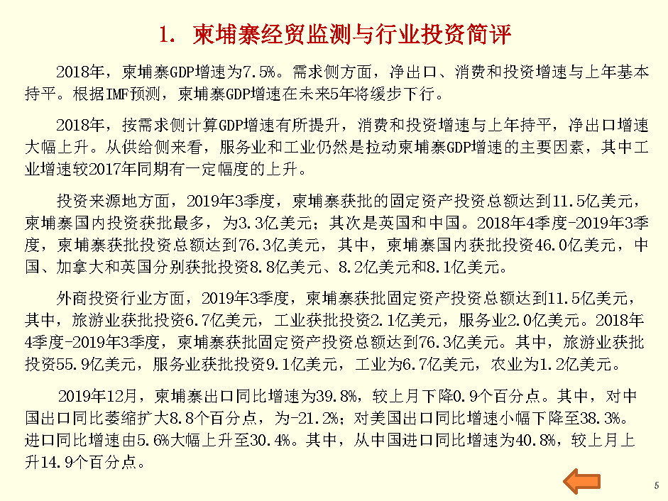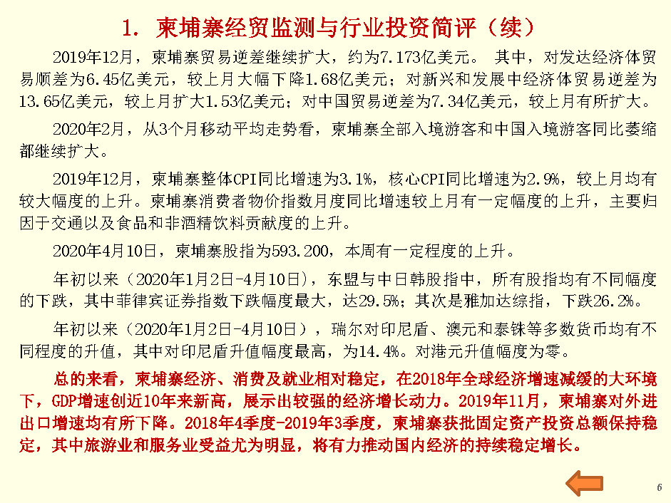 柬埔寨经贸监测与行业投资报告(2020年4月第4周)