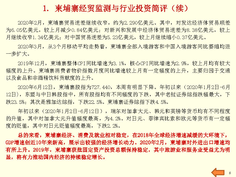 柬埔寨经贸监测与行业投资报告(2020年6月第2周)