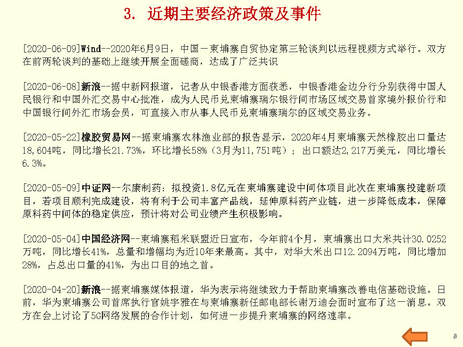 柬埔寨经贸监测与行业投资报告(2020年6月第3周)