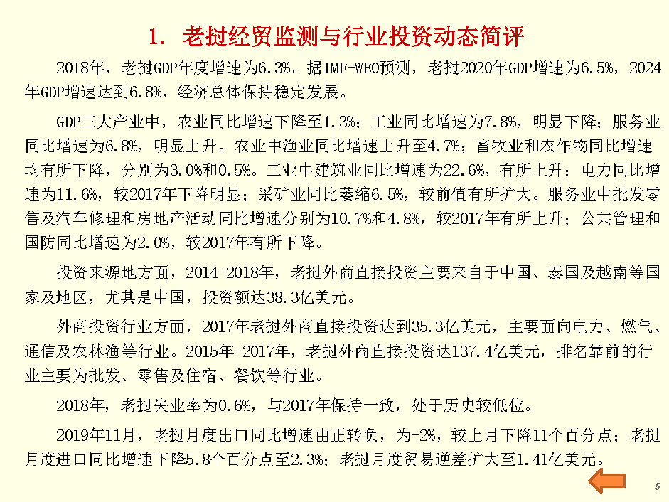 老挝经贸监测与行业投资报告