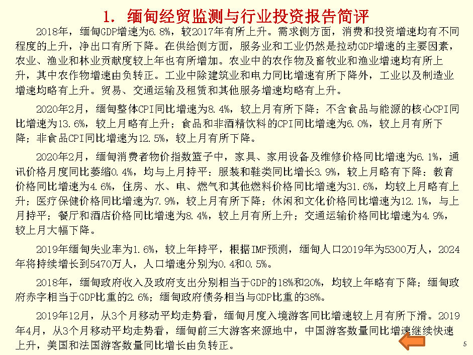 缅甸经贸监测与行业投资报告(2020年4月第5周)